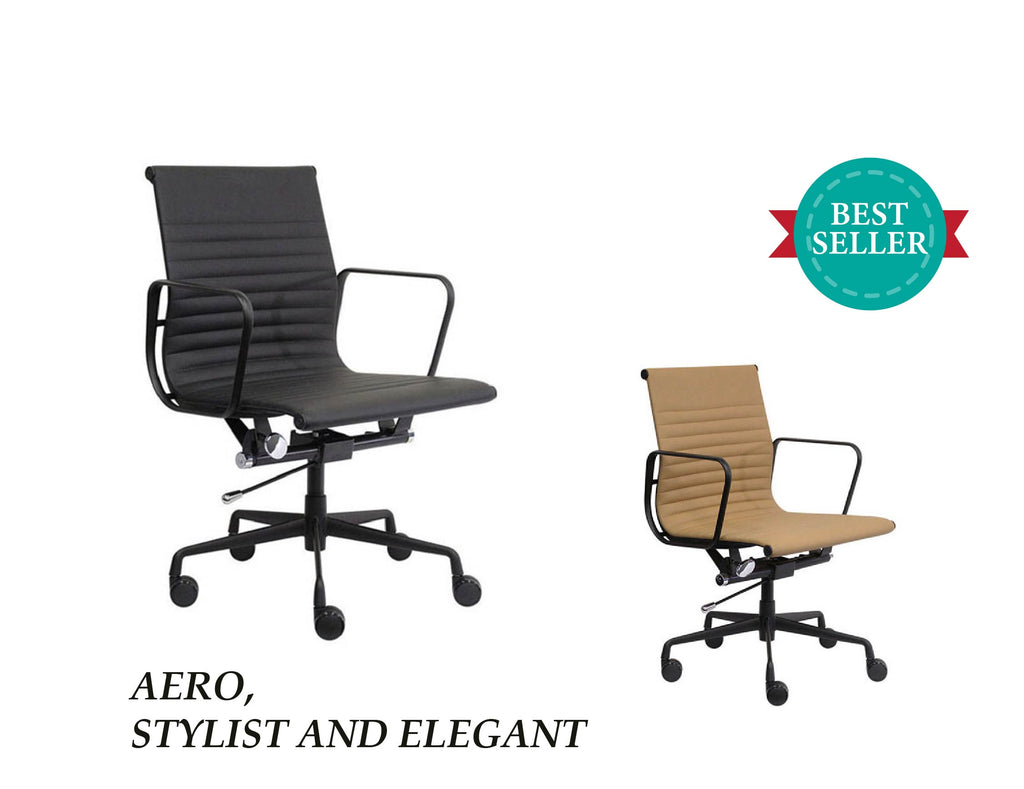 AREO - REPLICA EAMES MEDIUM BACK CHAIR - MATT BLACK ALUMINIUM